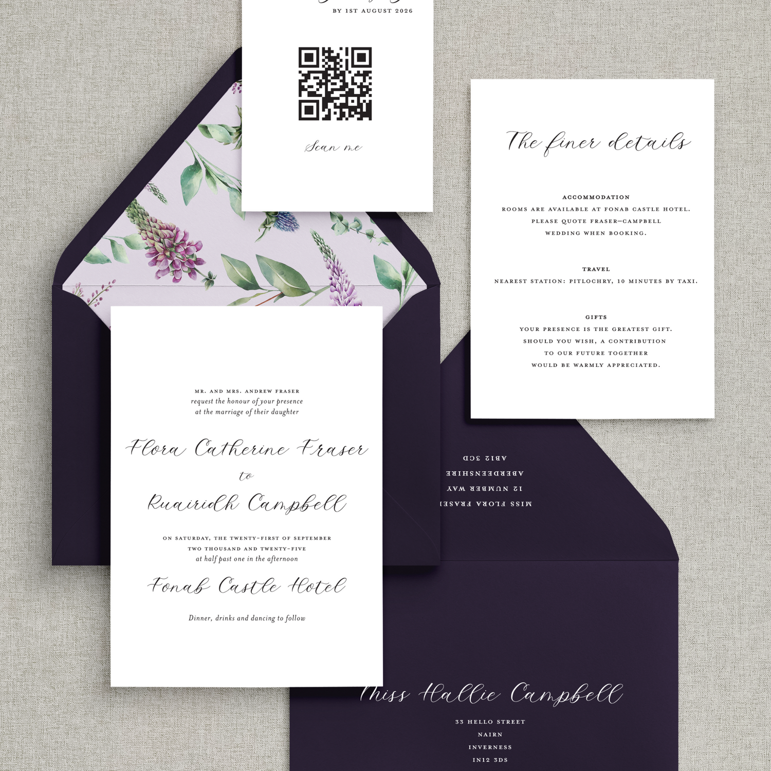 The Flora Suite is soft and romantic, pairing a delicate handwritten script with a clean serif for a design that feels fresh and timeless. The script brings gentle movement and charm, while the structured serif keeps the overall look elegant and balanced. Perfect for garden weddings, castle celebrations, or anywhere romance is in bloom, Flora is versatile, modern, and endlessly customisable.