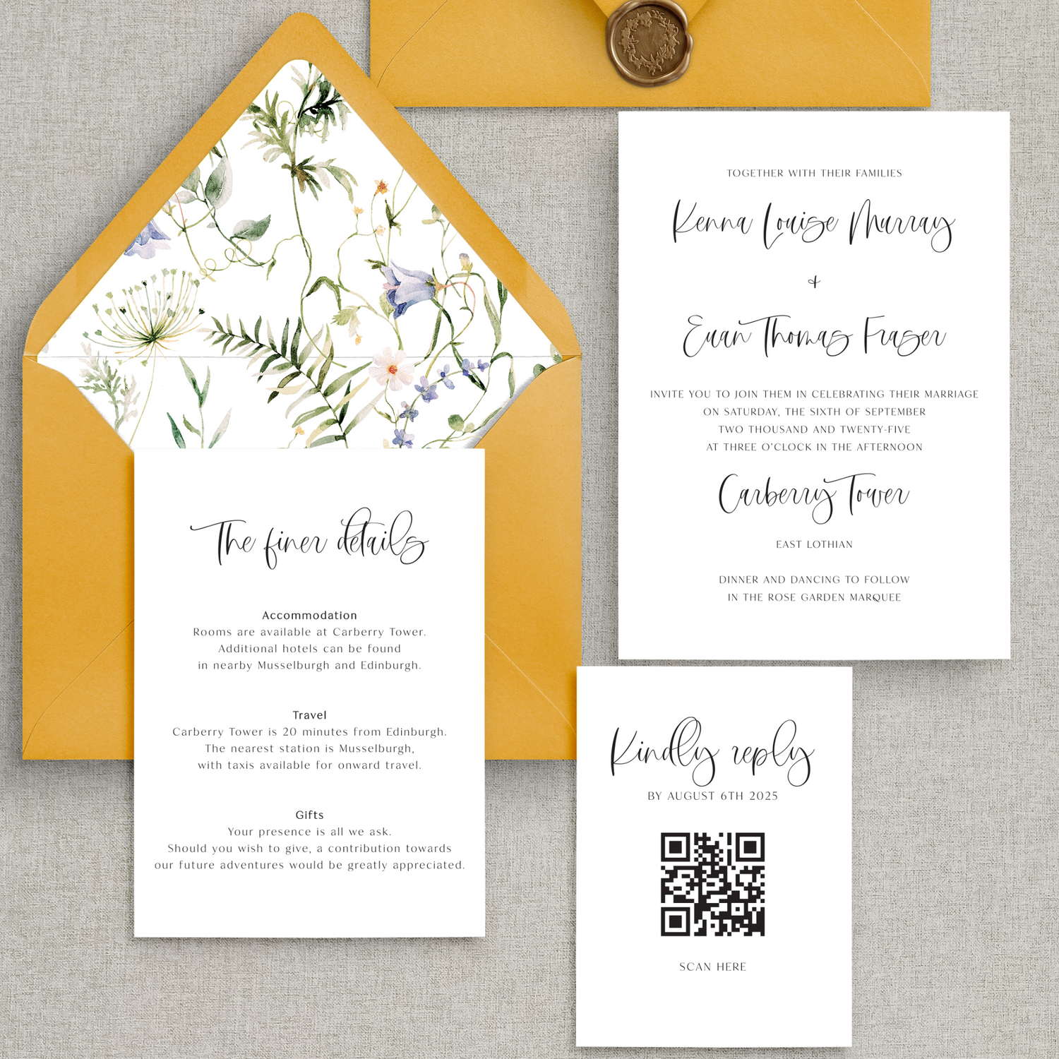 Every couple’s needs are different, which means every suite is too. Alongside your invitations, you may wish to include RSVP, menu and details cards. At your consultation, we’ll chat through which pieces are essential for your day and craft a suite that feels uniquely yours.